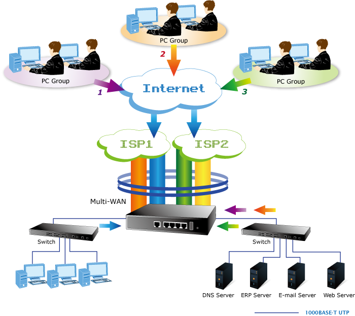 The IVR-100 connects dual WANs with up to two different ISPs. It creates a stable and qualified VPN connection for many important applications such as VoIP, video conferencing and data transmission.