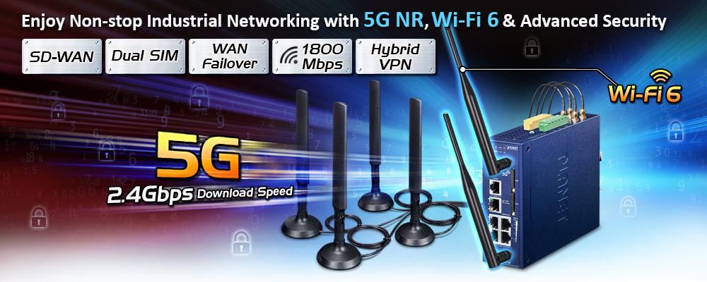 PLANET ICG-2515W-NR adopts 5G NR cellular technology and thus breaks the 100m limitation of RJ45 transmission. To avoid data loss affected by an unexpected breakdown connection on the part of ISP, the ICG-2515W-NR provides dual SIM card slots and failover functions and advanced features like VLAN, VPN, Modbus, and network management to cover more applications.
