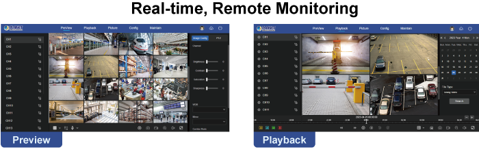 - Supports operation simultaneously for Preview, Recording, Playback, Live and Backup