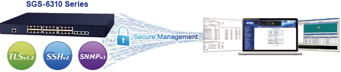 Moreover, the SGS-6310 series offers secure remote management by supporting SSHv1/v2 and TLSv1.2 connection which encrypts the packet content at each session.