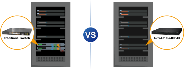 Traditional switches used in AV racks were not designed with the AV industry's specific needs in mind, resulting in inconvenient cable management and difficult multitasking for both installers and users. This was further compounded by a visual inconsistency, as the cabling of other Pro AV devices, such as amplifiers and media players, is typically located at the back, in contrast to the front-facing cabling of the traditional switches. Planet's Pro AV switch addresses these issues by repositioning the RJ45 ports and display panel, enhancing both cable management and aesthetic appeal.
