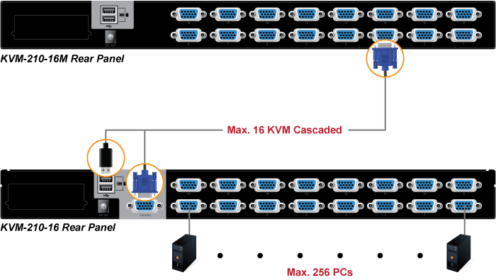 | Maximum | 256 by cascading (KVM-210-16 x 16) |